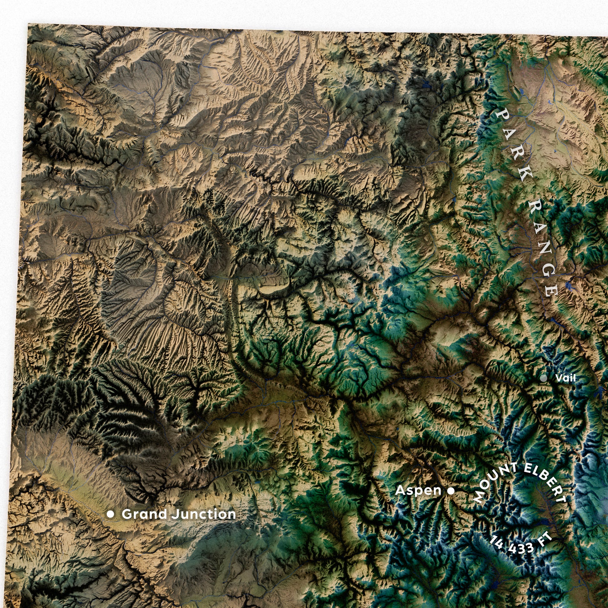 Experience Colorado through this stunning exaggerated shaded relief map that brings the dramatic topography to life. Unlike typical modern shaded relief wall maps, this combines artistic beauty with practical information, making it perfect for both decoration and reference.