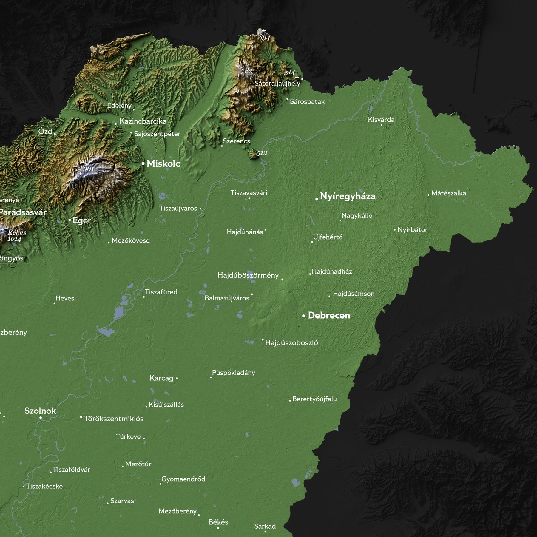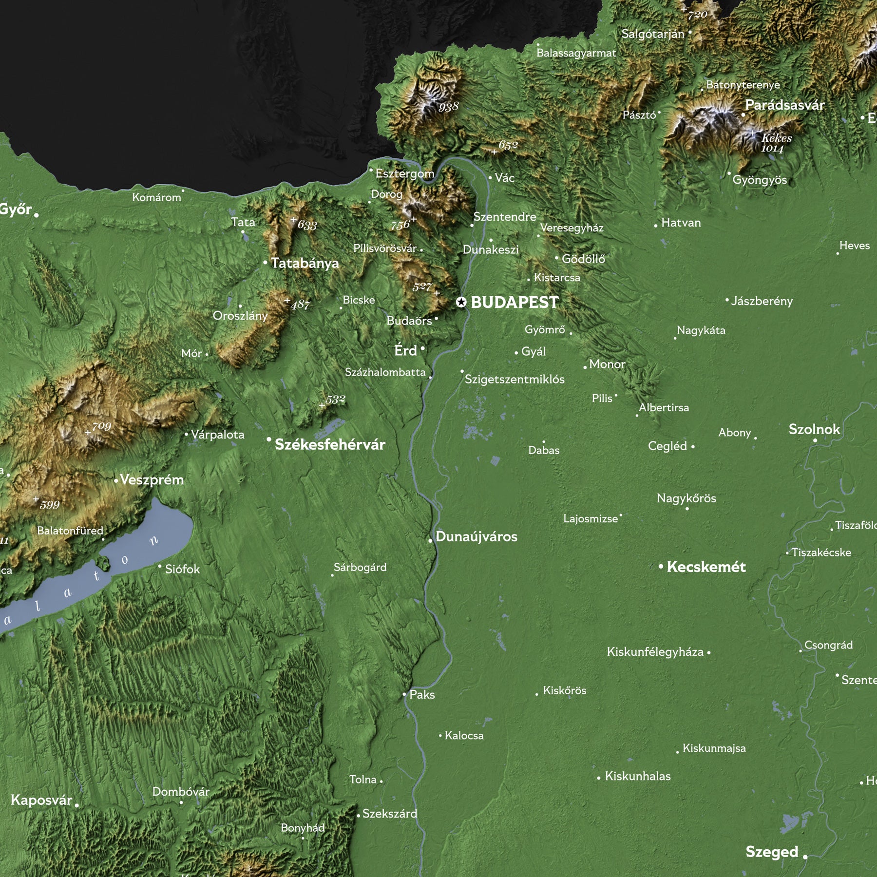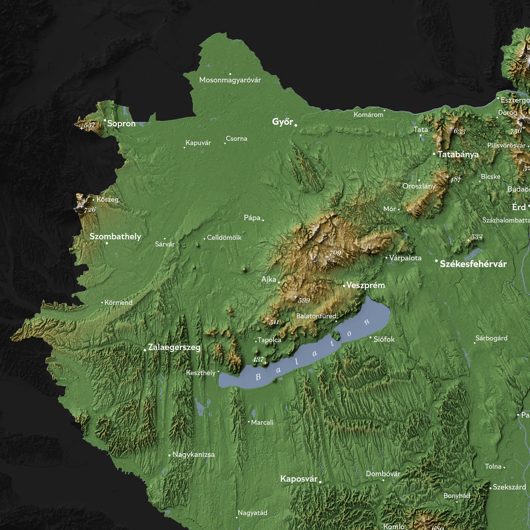 Hungary Topographic Relief Map – Dark Edition Wall Art (2D Print)