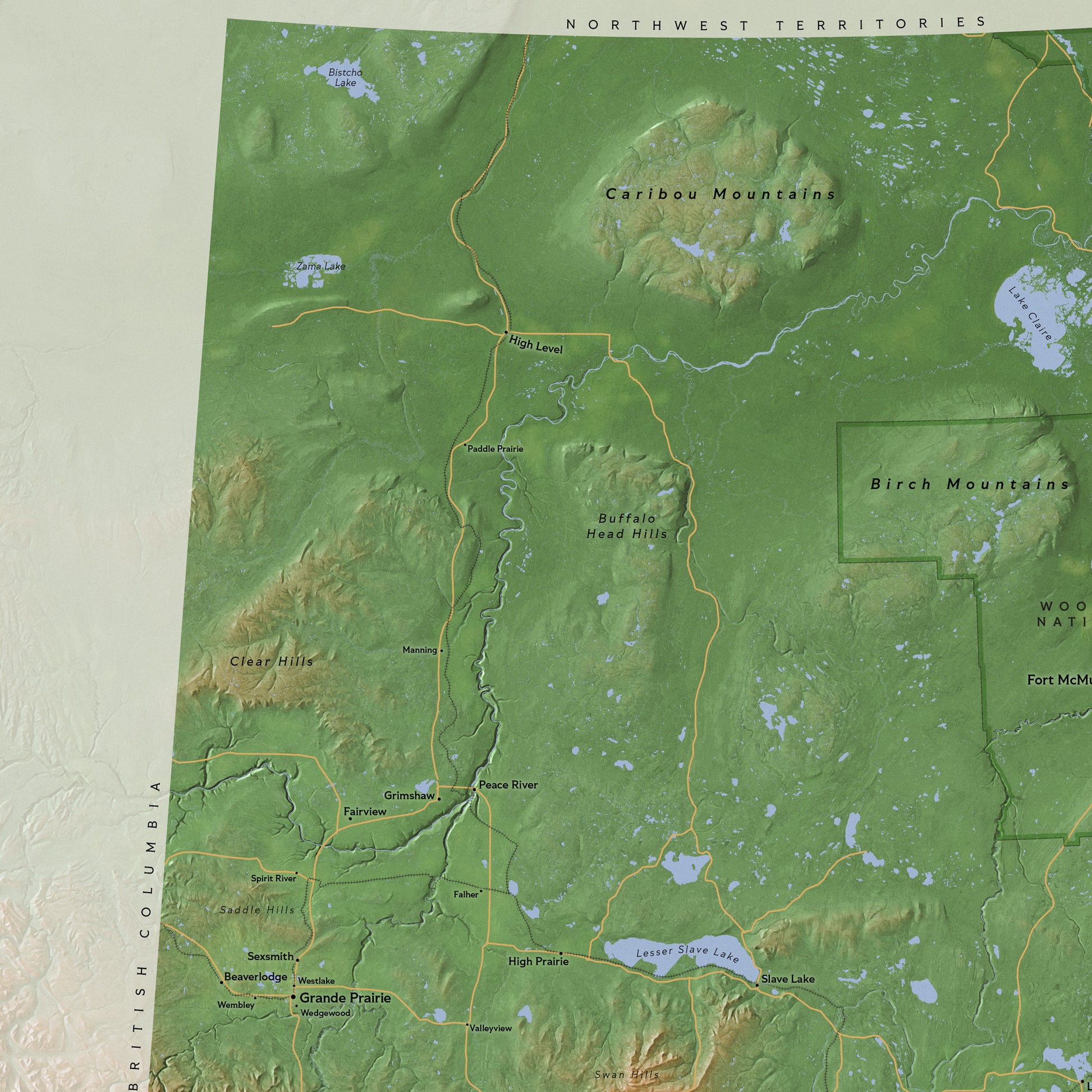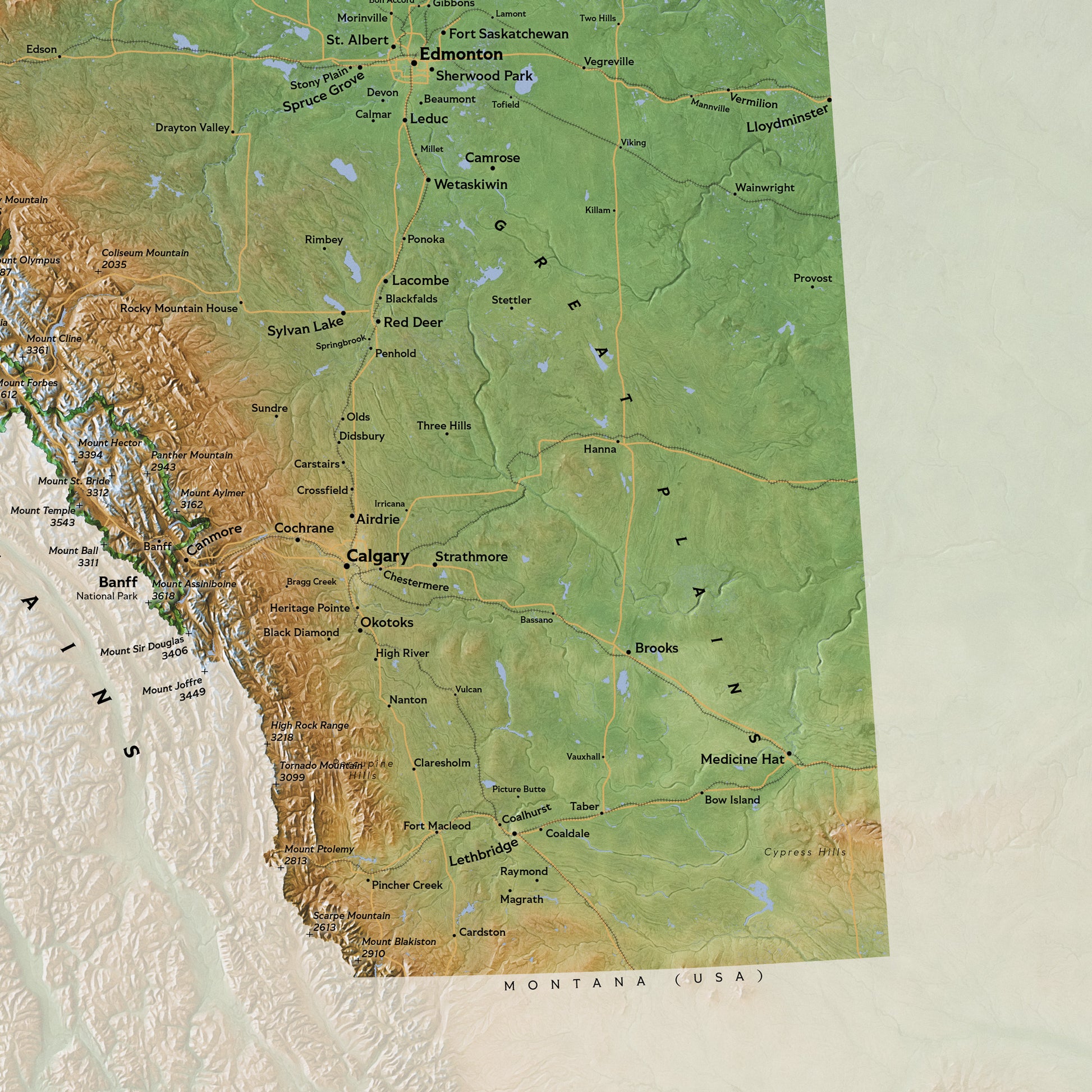 Experience Alberta through this stunning shaded relief map that brings the dramatic topography to life. Unlike typical modern shaded relief wall maps, this combines artistic beauty with practical information, making it perfect for both decoration and reference.