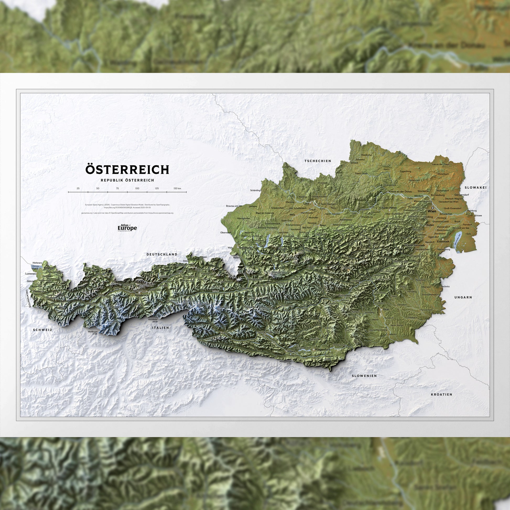 Experience Austria through this stunning shaded relief map that brings the dramatic topography to life. Unlike typical modern shaded relief wall maps, this combines artistic beauty with practical information, making it perfect for both decoration and reference.