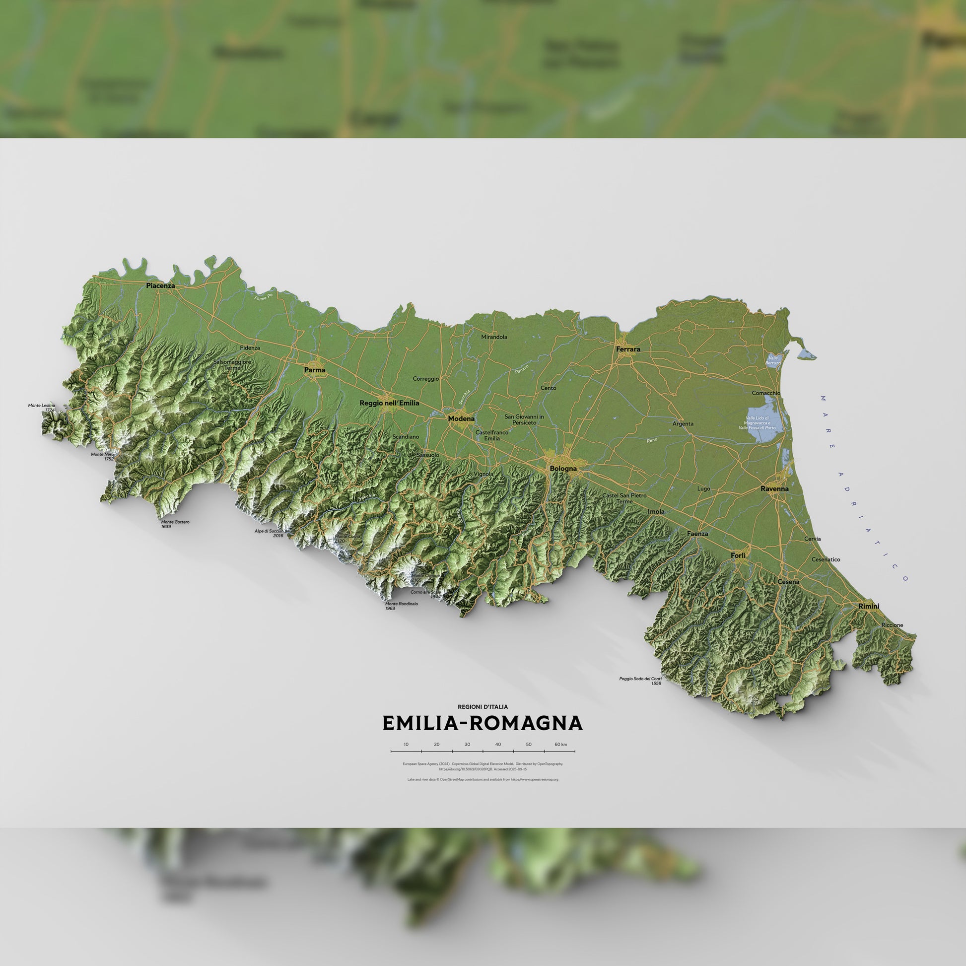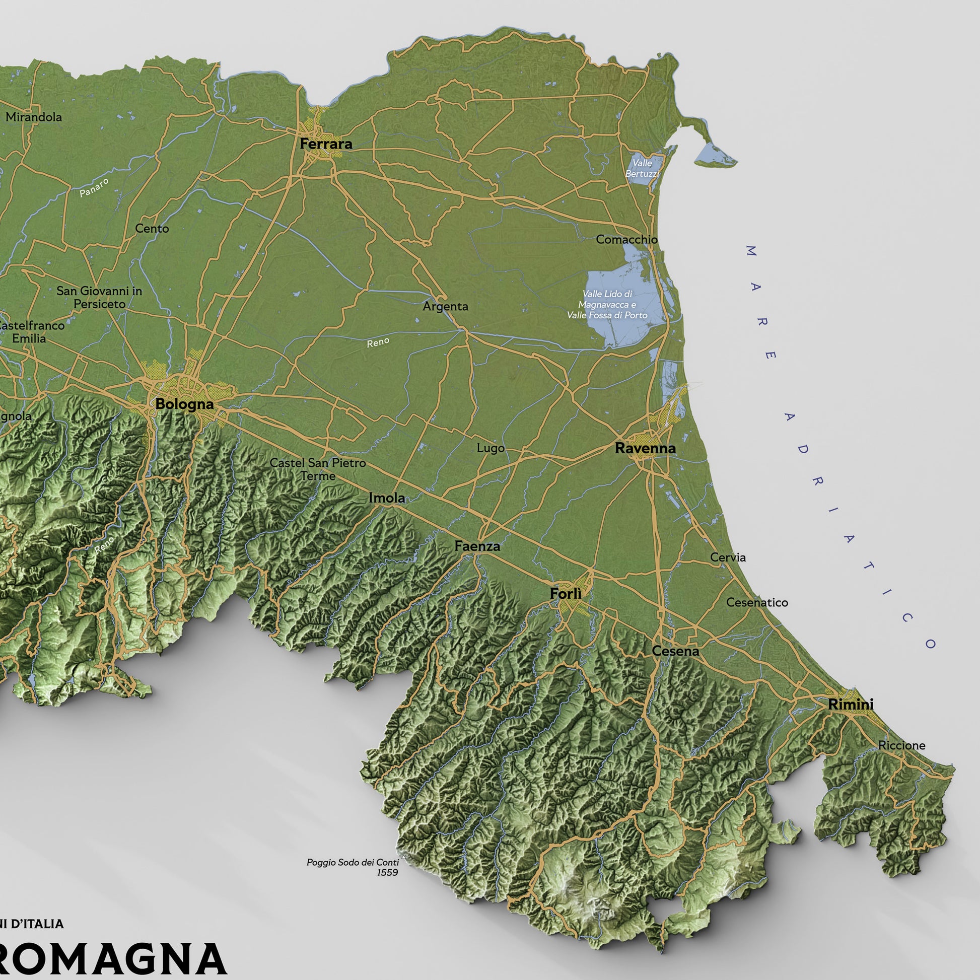 Experience Emilia-Romagna through this stunning shaded relief map that brings the dramatic topography to life. Unlike typical modern shaded relief wall maps, this combines artistic beauty with practical information, making it perfect for both decoration and reference.