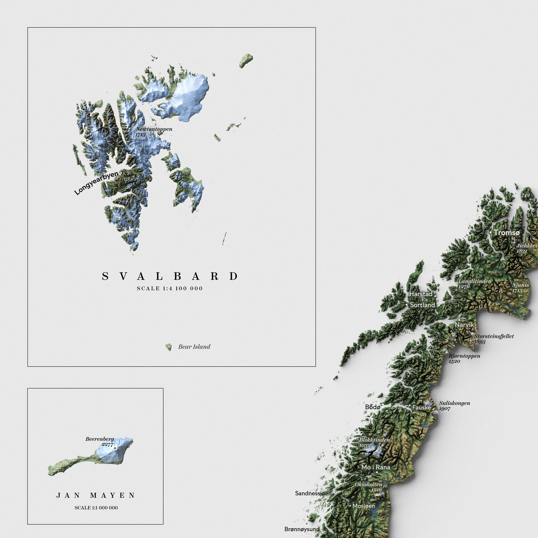 Experience Norway through this stunning shaded relief map that brings the dramatic topography to life. Unlike typical modern shaded relief wall maps, this combines artistic beauty with practical information, making it perfect for both decoration and reference.