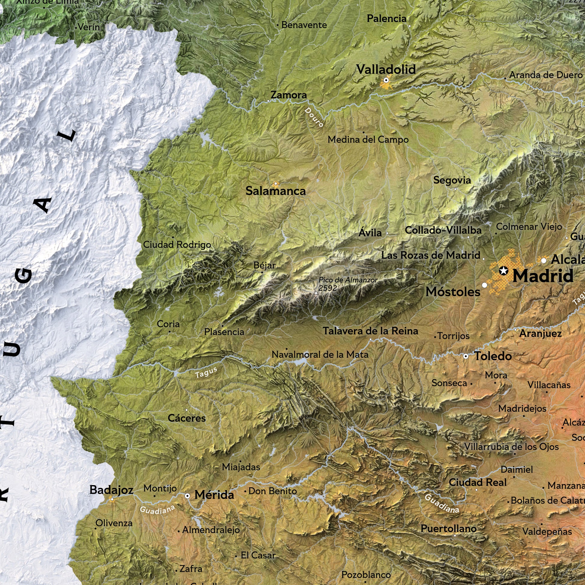 Experience Spain through this stunning shaded relief map that brings the dramatic topography to life. Unlike typical modern shaded relief wall maps, this combines artistic beauty with practical information, making it perfect for both decoration and reference.