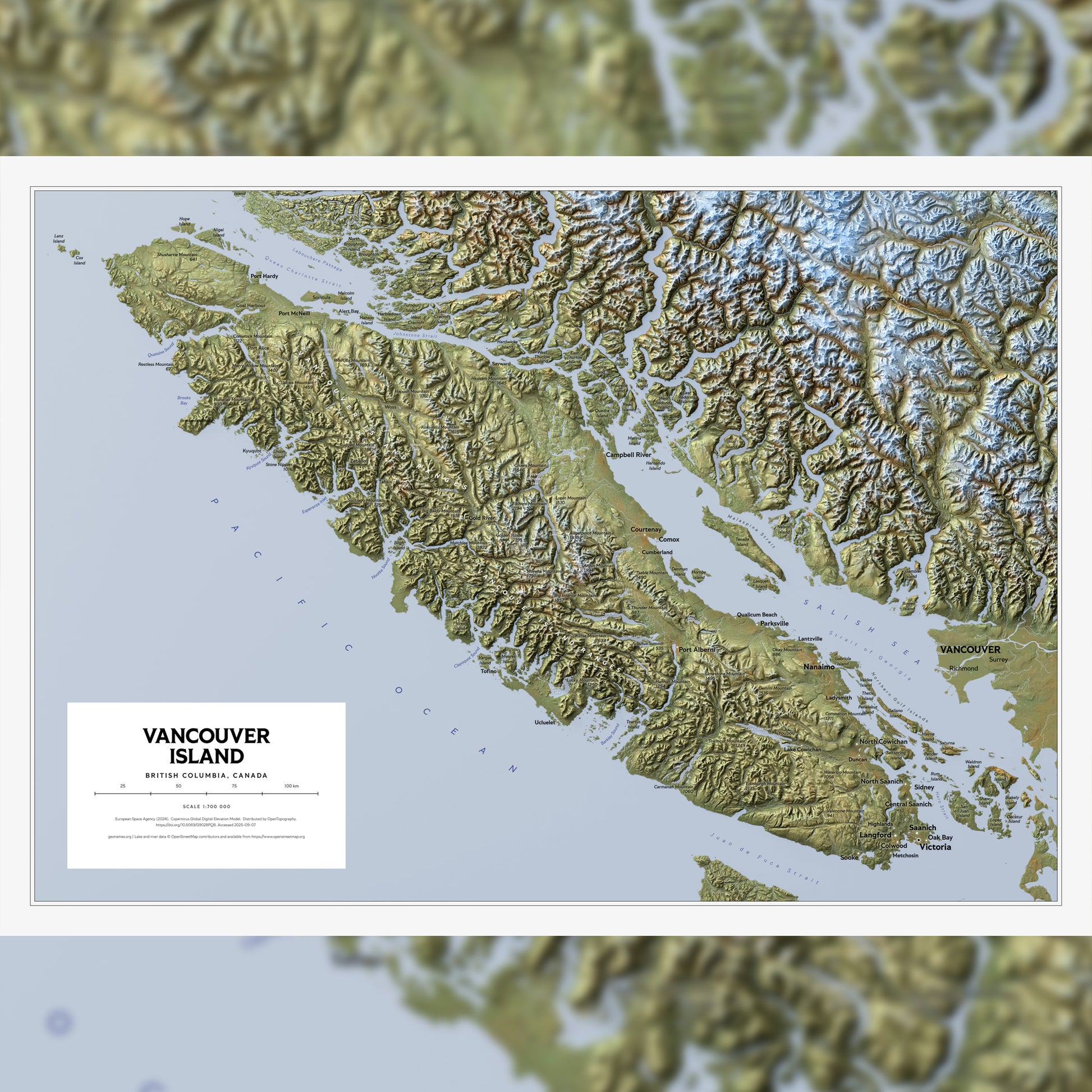Experience Vancouver Island through this stunning shaded relief map that brings the dramatic topography to life. Unlike typical modern shaded relief wall maps, this combines artistic beauty with practical information, making it perfect for both decoration and reference.