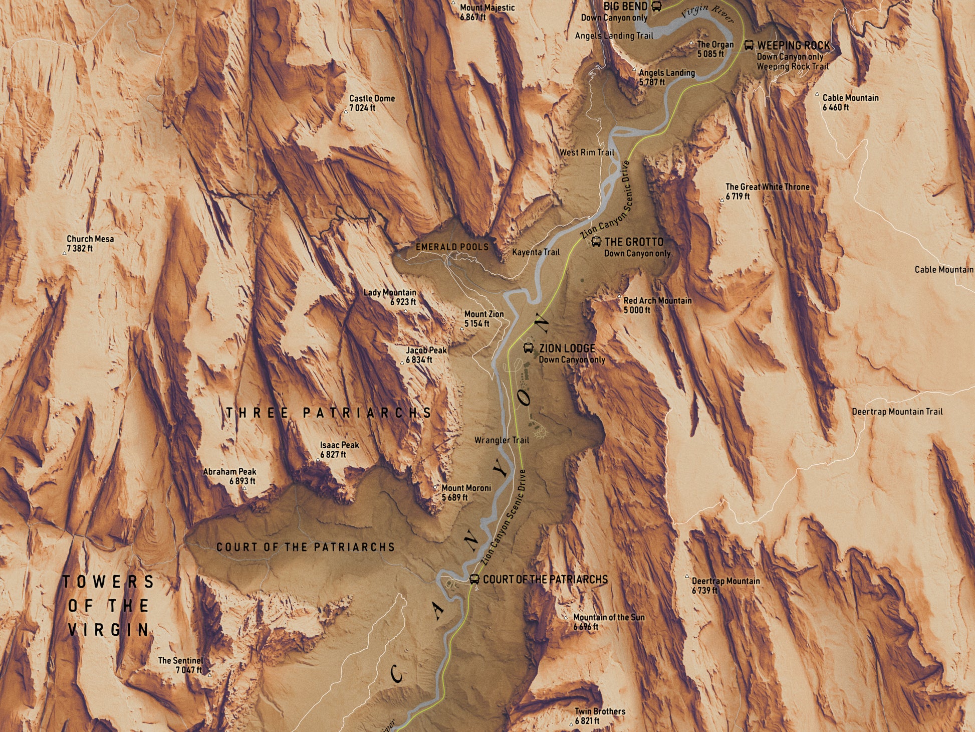Zion Canyon Map Print – 18x24” Shaded Relief